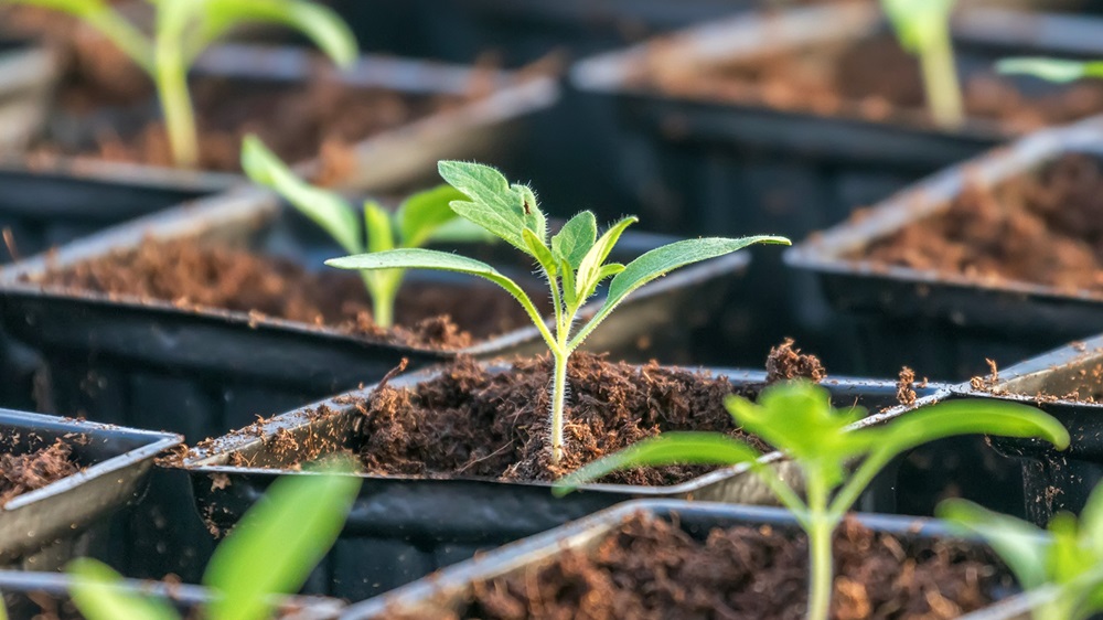 Young hands plant a seedling into the soil.